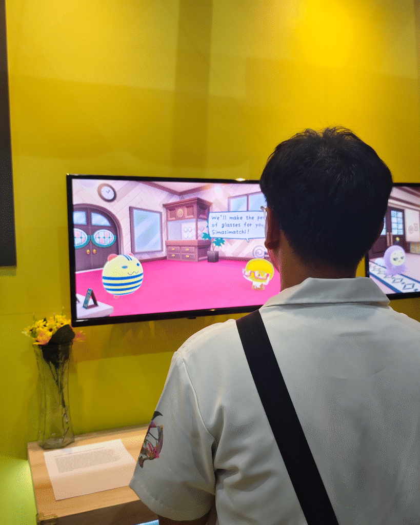 Selanjutnya ada booth Tamagotchi Plaza, disini pertama kali kami coba main game demo dari Bandai Namco Entertainment nih! Tidak seperti game Tamagotchi yang umum kita kenal dimana kita akan membesarkan peliharaan virtual, disini kita akan membantu mereka membuka toko dan mendapatkan uang. Kabarnya akan ada 12 toko yang bisa dimainkan saat perilisan nanti, namun di demo kali ini kami hanya bisa mencoba 3 toko: